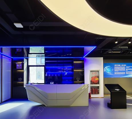 項目成果:該項目為蘇州錦富技術股份有限公司上海辦事處工程項目,由綜合辦公樓及數字化多媒體展廳組成。CEIDI西遞作為項目的全方位EPC集成服務商,承攬了項目設計、裝修施工、內部配套系統建設等一系列業務。數字化多媒體展廳用現代、智慧、科技感的包裝使其符合企業發展定位,立體全面地展示了包含光電顯示新材料、光電顯示薄膜器件全面成套解決方案如曲面顯示器、超薄機種(玻璃導光板)、CNC精密加工以及精密治具、模具等廣泛應用于3C電子產品的精密部件。受到了業主的一致好評,目前該項目已投入使用。