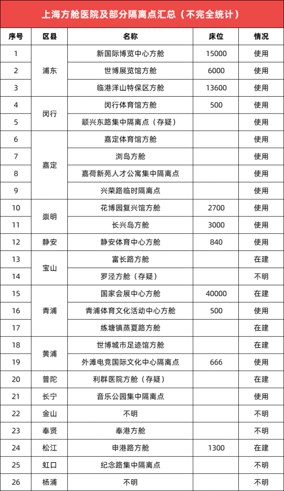 8日,上海日增本土病例(確診+無癥狀)已破兩萬。在抗疫最緊要關頭,登上老百姓關注排行榜榜首的,非以下兩個問題莫屬。一個是確診和密接是否能及時轉運;一個則是居家隔離抗疫是否能有民生保障。毋庸置疑,在上??挂叻结槻粩嗾{整變化的形式下,政府如何解決病床缺口讓普通老板姓也擔憂不已。社交平臺上我們經常能看見的、曝光較為頻繁的以世博方艙、新博覽會展方艙為代表的浦東方艙陣營,因最早加入抗疫前線,公眾較為熟悉。那么放眼整個上海,還有哪些方艙隔離點呢?CEIDI西遞根據網絡上不完全統計,將上海區域隔離點匯總如下: